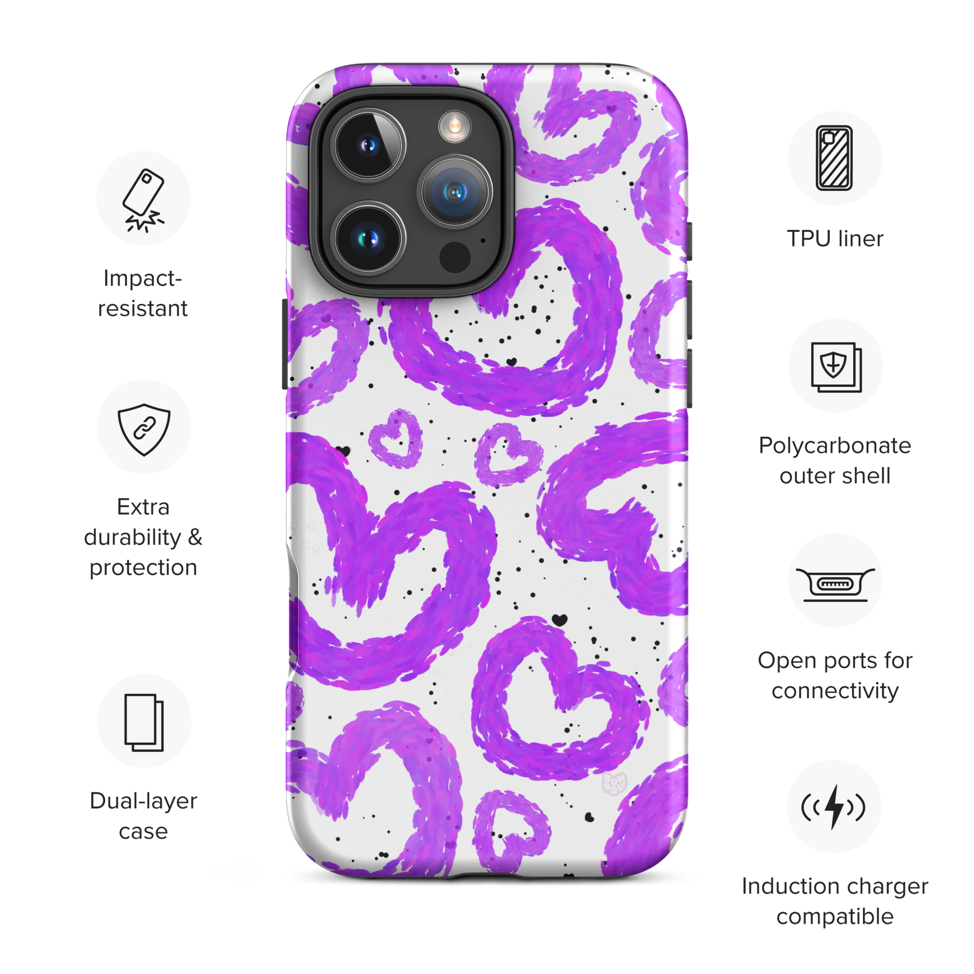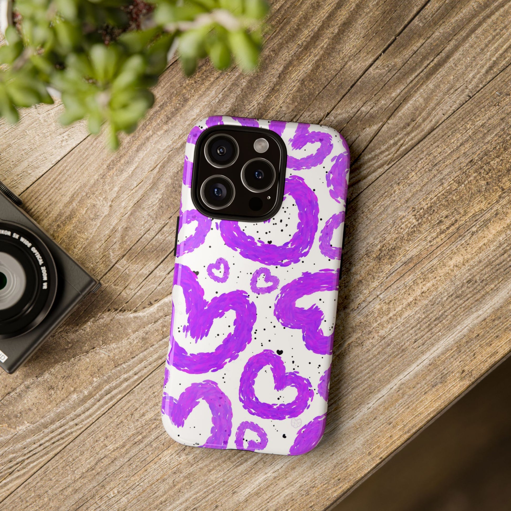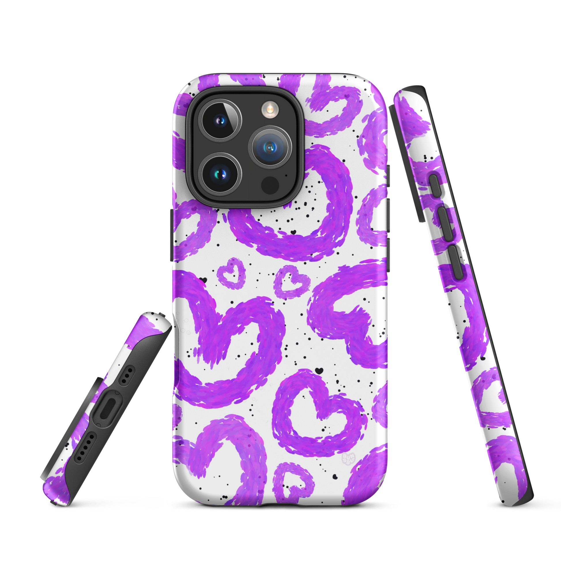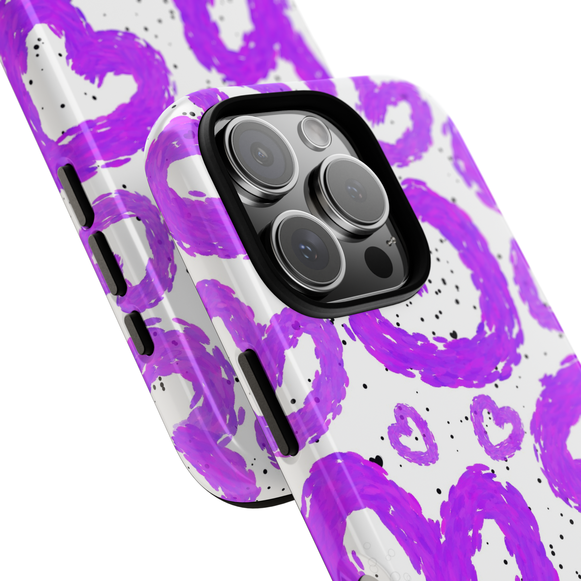 Elevate your phone's style with this vibrant Tough Case, featuring playful purple hearts bouncing across a white background. This case not only protects your device but also adds a pop of personality to your everyday look. Its eye-catching design makes it a perfect accessory for those who love expressing their unique style. Ideal for anyone who appreciates fun, artistic phone accessories, this Tough Case is a must-have for birthdays, Valentine's Day, or just because! Its durability and stylish vibe make it the perfect gift for friends or as a treat for yourself, ensuring your phone stands out while staying protected.