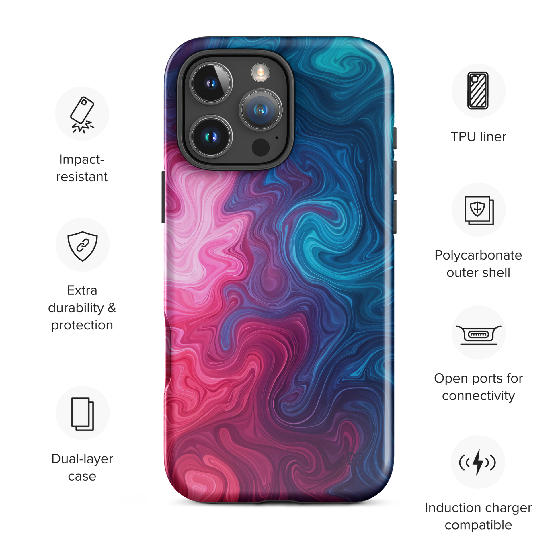 Whipped wonder, the Ink Candy Tough Case is a hypnotic swirl of electric pink and dreamy blue ink, like a cosmic storm dipped in dessert. Every twist and ripple tells a story of motion, mood and bold expression. Built to shield, styled to thrill, this case turns your phone into a handheld masterpiece.